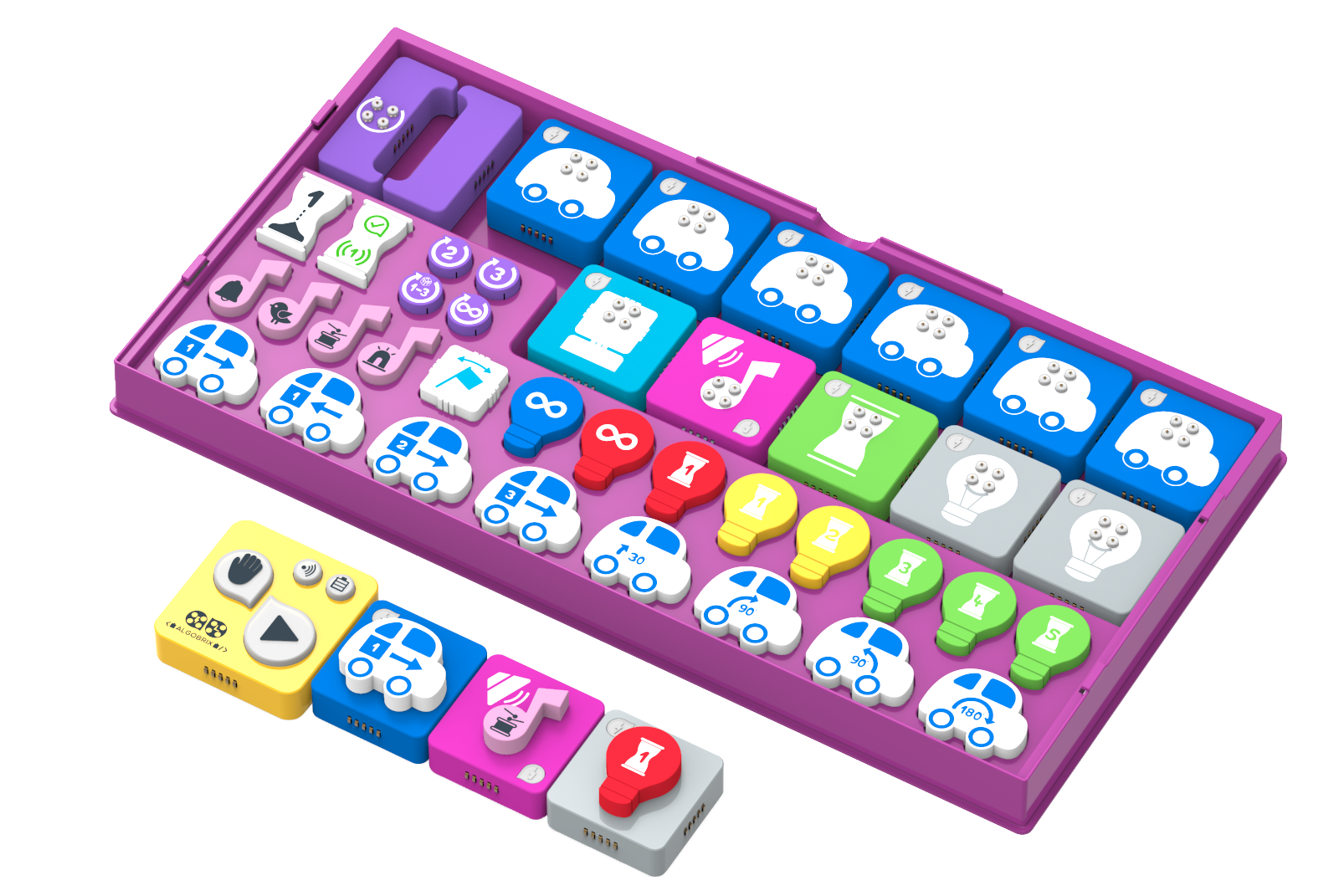 Con AlgoBuddy, niños en edad preescolar actúan como pequeños ingenieros de programación, ya que ayudan a AlgoBuddy a moverse, iluminarse, interactuar con el entorno y a participar de una variedad de movimientos únicos que proporcionan un marco emocionante para que AlgoBuddy realice diversas tareas.